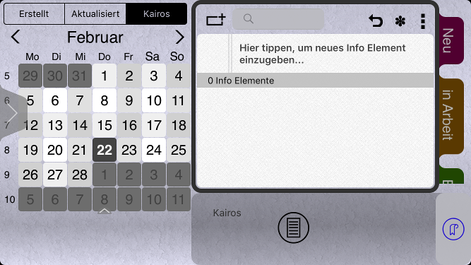 - Jedes Info Element kann mit einem 'Kairos' versehen werden (siehe Kairos Wikipedia)